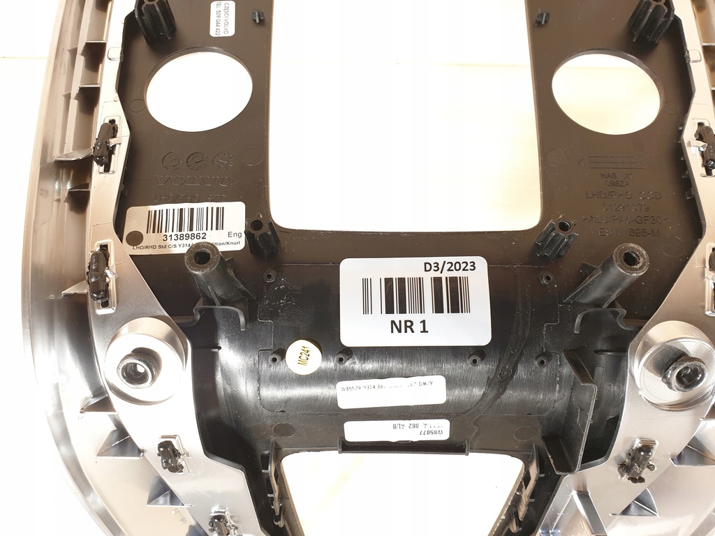 COUVERCLE DE TABLEAU DE BORD CHROME, CONTROLE D'AIR, OE N° 31389862. TRÈS BON ÉTAT.