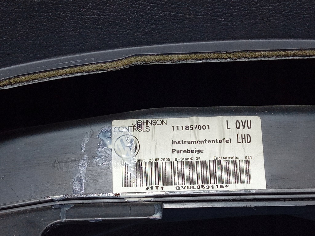 Description: tableau de bord noir, fond beige, l'ensemble comprend : tableau de bord 1T1857001, signes d'utilisation visibles, airbag conducteur 1T0880201A, airbag passager 1T0880204A, capteur airbag 1T0909605C, ceintures de sécurité avant droite + gauche, couleur beige 1T1857706 1T1857705A, signes d'utilisation visibles, enia sale - qualité B && VW TOURAN ET CEINTURES D'OREILLERS DE TABLEAU DE BORD