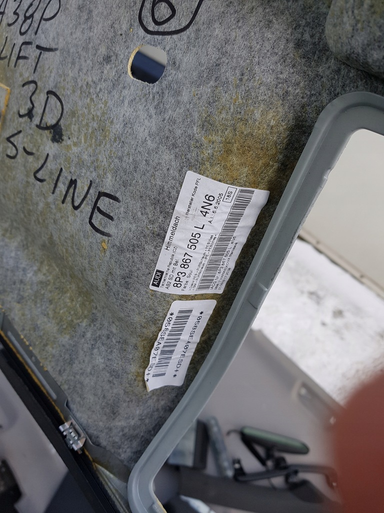 AUDI A3 8P 04- S-LINE HEADLINING. THE HEADLINING IS GETTING OFF NEAR THE LAMP. THREE-DOOR VERSION.