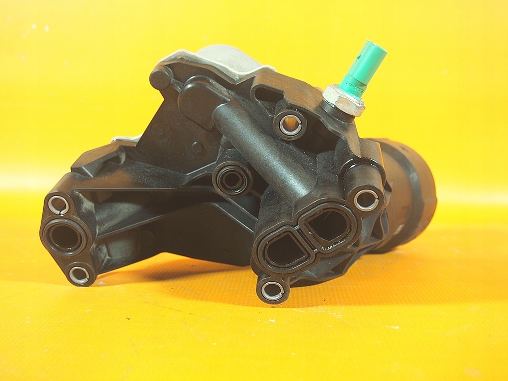 Oil filter housing with sensors and radiator
