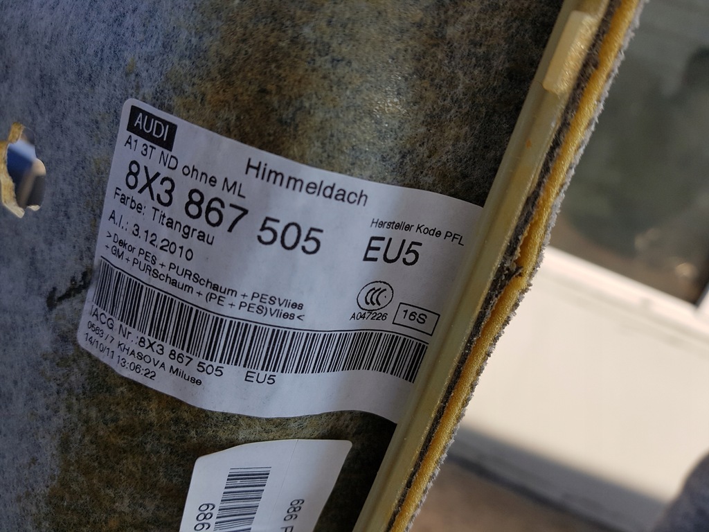 Audi door headliner OE 8X3867505