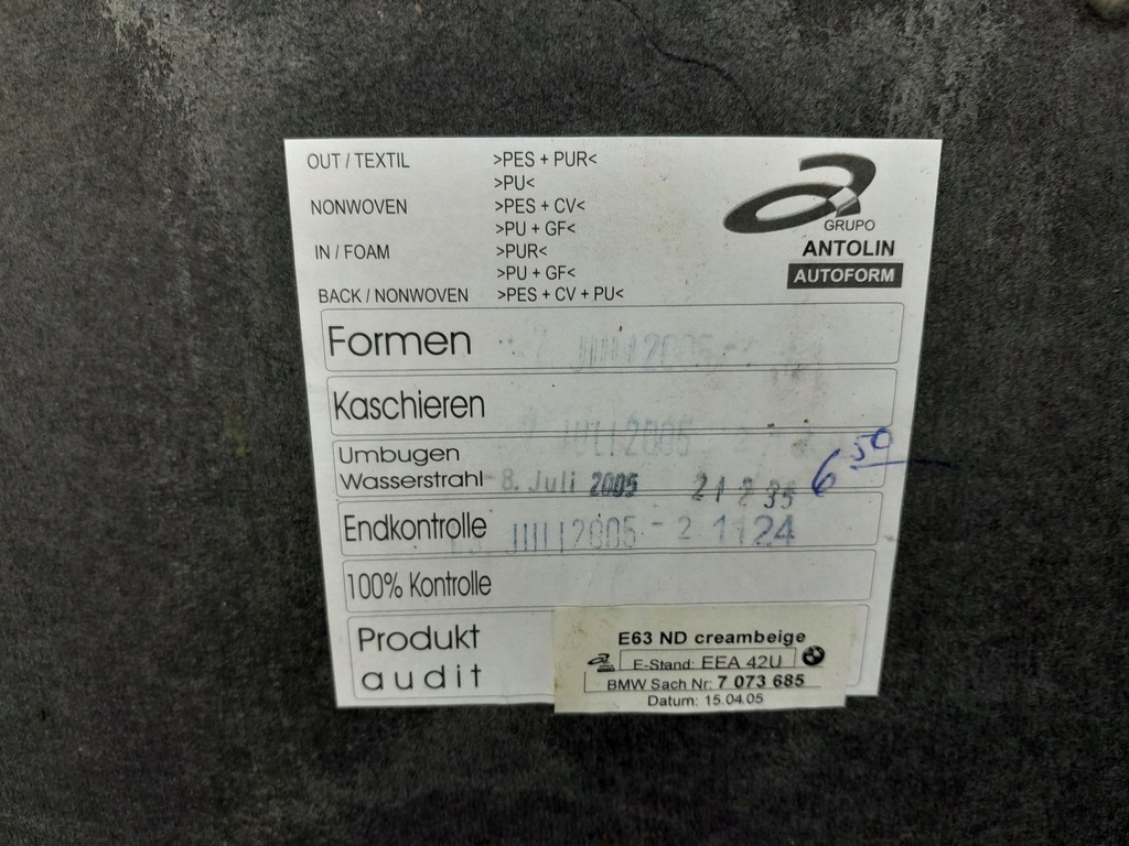 Description: has minor dirt, - quality B && BMW 6 E63 HEADLINING