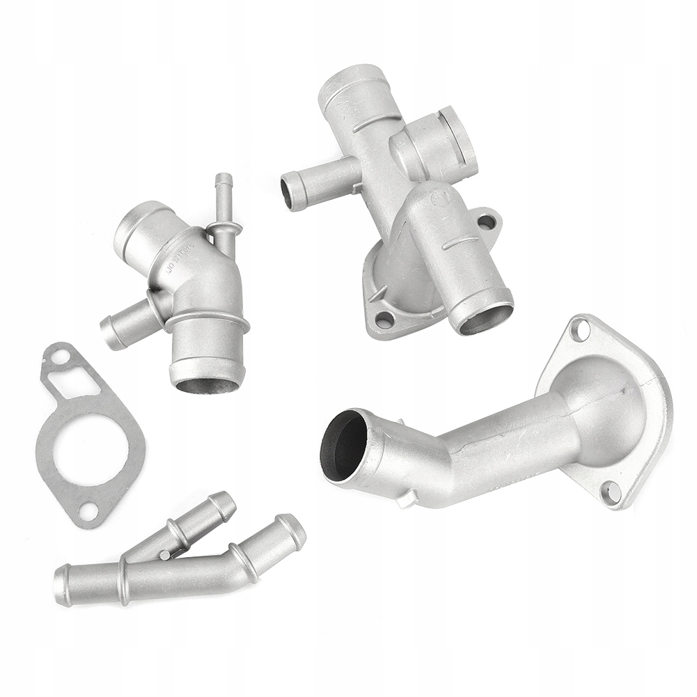 Cast from high-quality aluminum material for high quality and maximum durability. High quality aftermarket engine coolant hose collar kit.