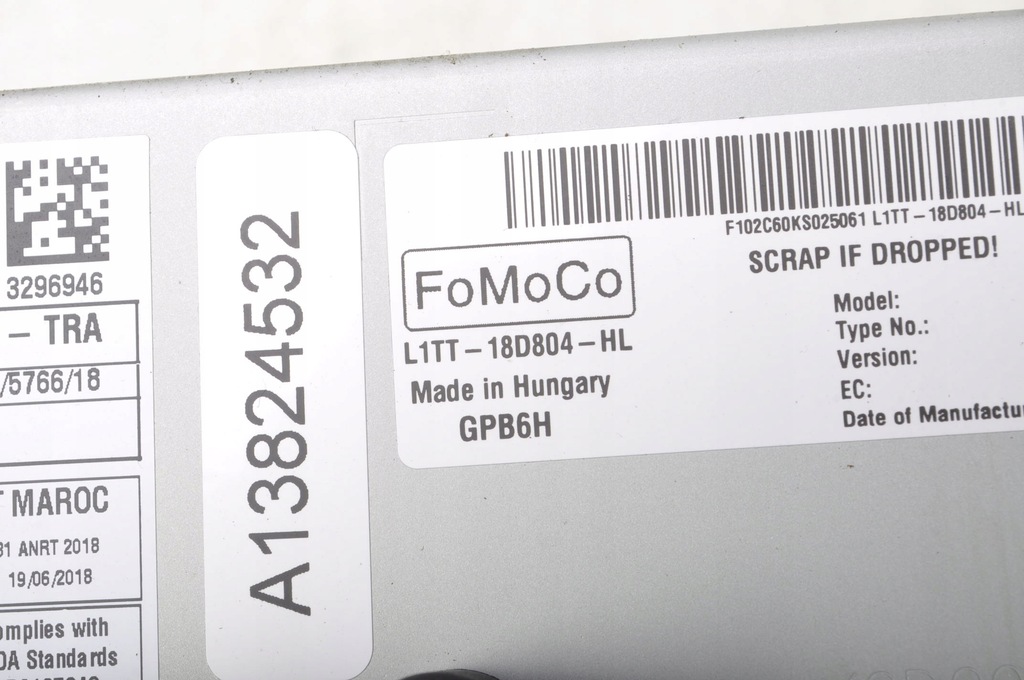 NAME RADIO SERIAL NO. L1TT-18D804-HL BRAND FORD MODEL FIESTA MK8 ENGINE BODY NUMBER OF DOORS SUB-MODELS ENGINE CAPACITY 0.0 TYPE OF TRANSMISSION Manual FUEL TYPE ENGINE CODE YEAR OF PRODUCTION YEARS OF PRODUCTION COLOR CODE COLOR PART ID: ID: 3095 77