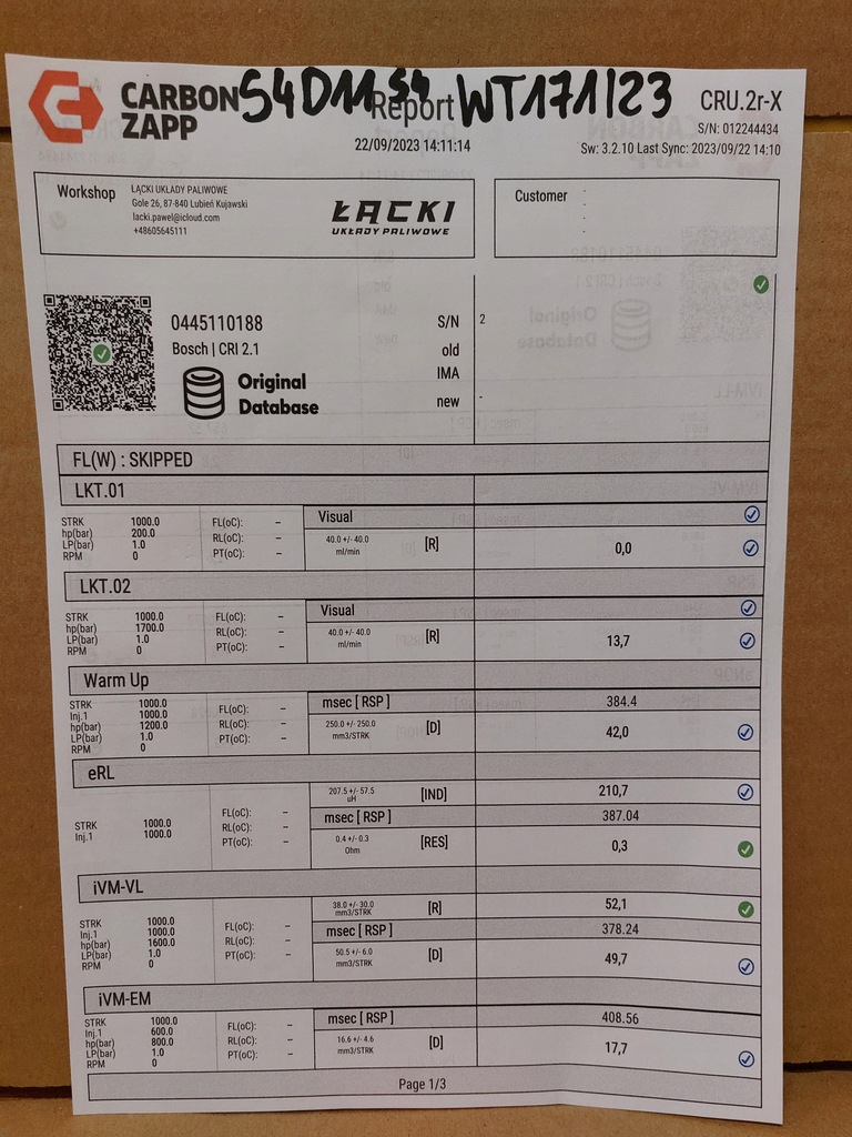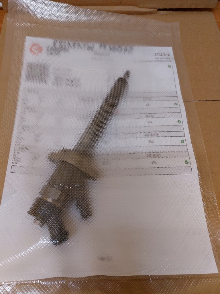 THE PURCHASED INJECTOR COMES WITH A MEASUREMENT PRINTOUT SHOWN IN THE PHOTO.