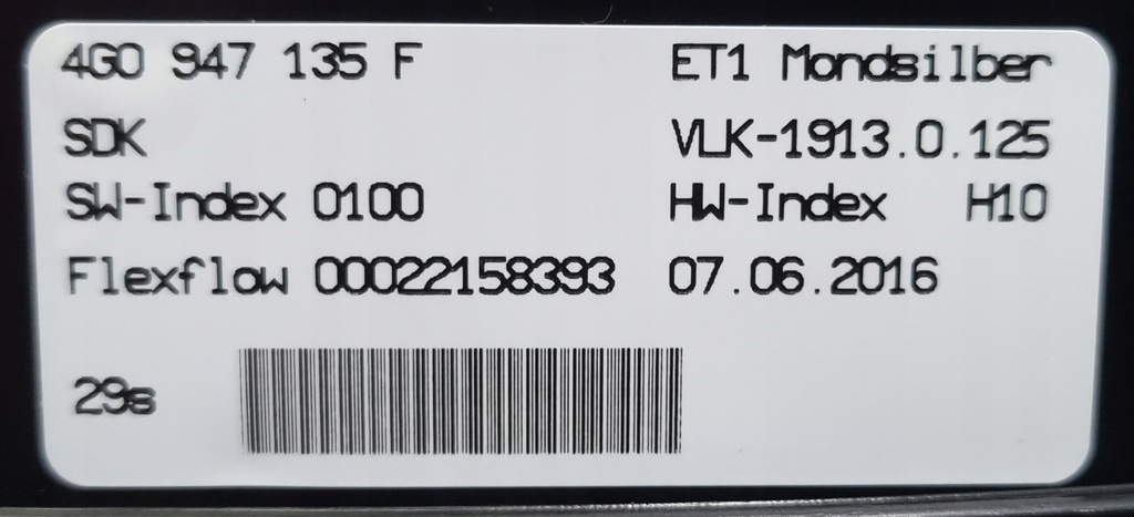 | Part catalog number | 4G0947135F ET1 |
