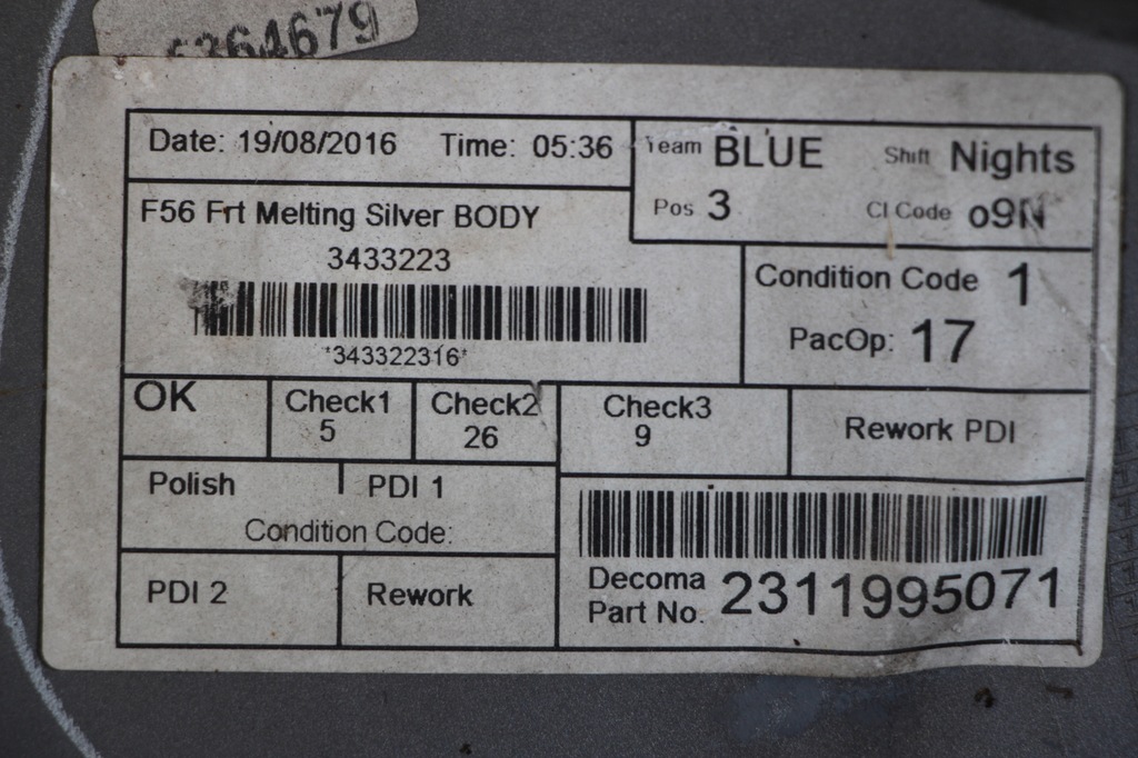 | Part quality (according to GVO) | O - original with the vehicle manufacturer's logo (OE) |