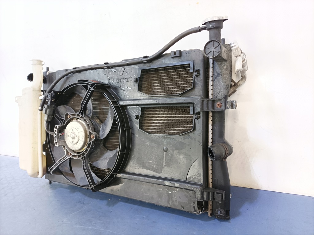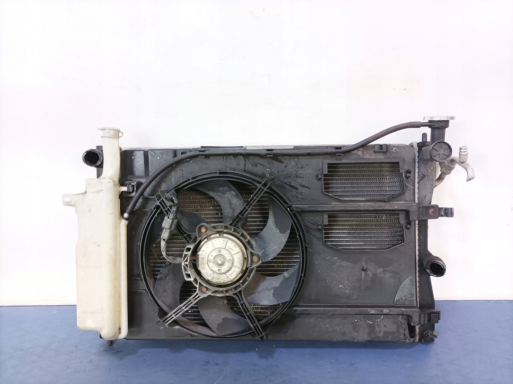 Description: the set includes a radiator fan, a water radiator, an air conditioning radiator with a dent, with an expansion tank, - quality B && MITSUBISHI COLT VI 1.3 SET OF RADIATORS FAN