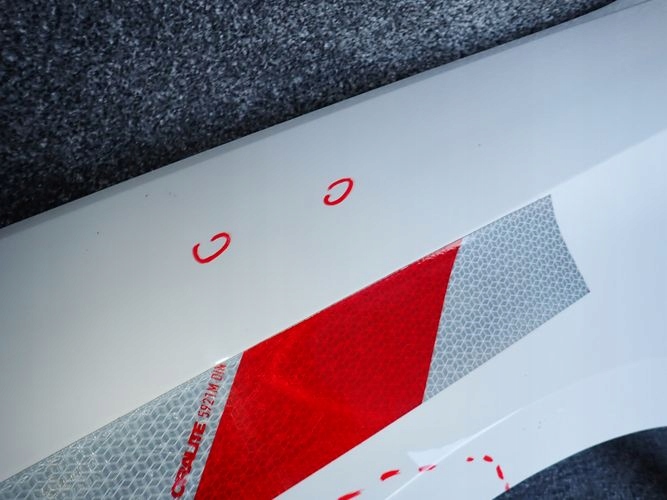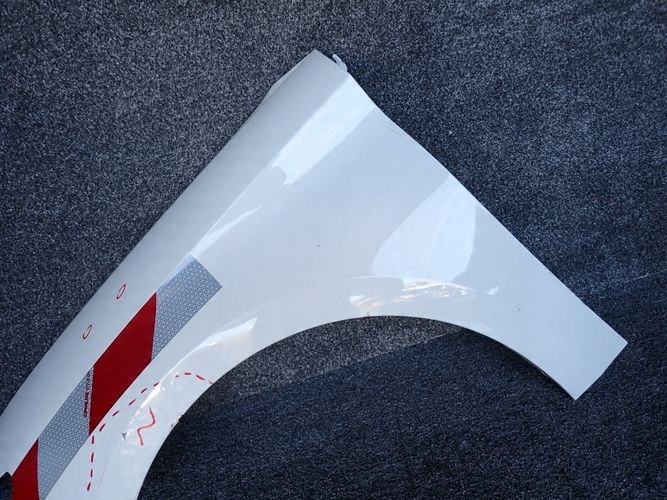 The fender is damaged and repaired in the marked place