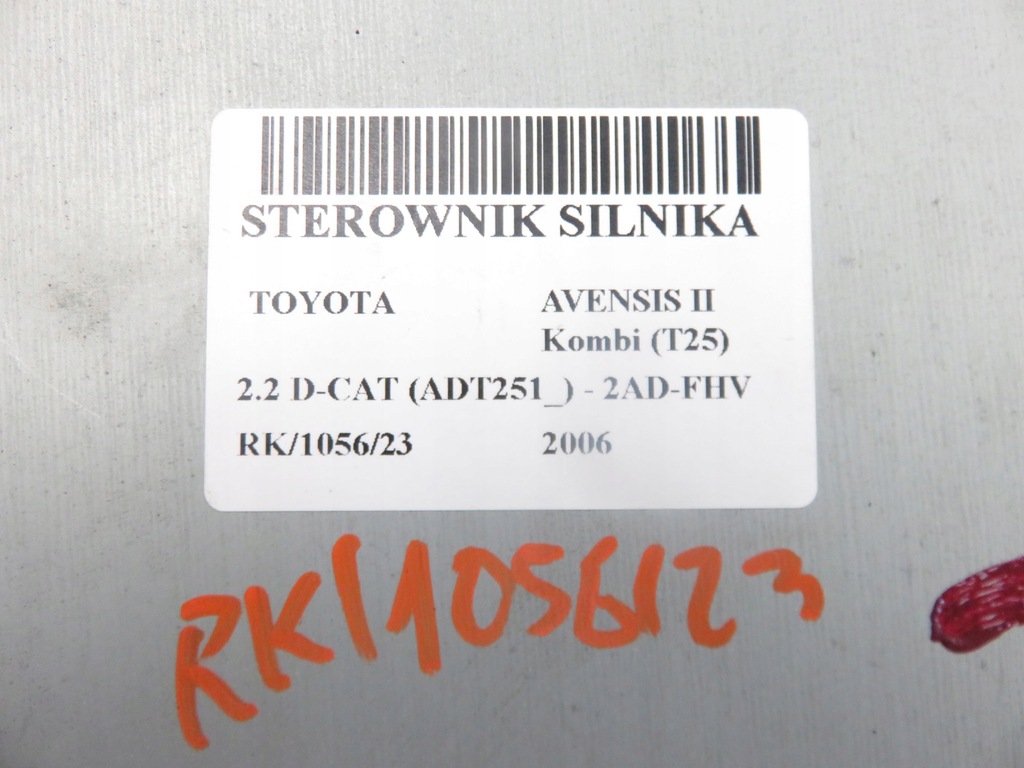 ENGINE CONTROLLERATOYOTAAVENSIS Kombi (_T25_)20062.2 D-CAT (ADT251_) - 2AD-FHVDIESLAKOMBIINumber of doors: 5Gearbox: MANUAL 6-SPEED Serial number: 8966105A21 Part ID: M935460