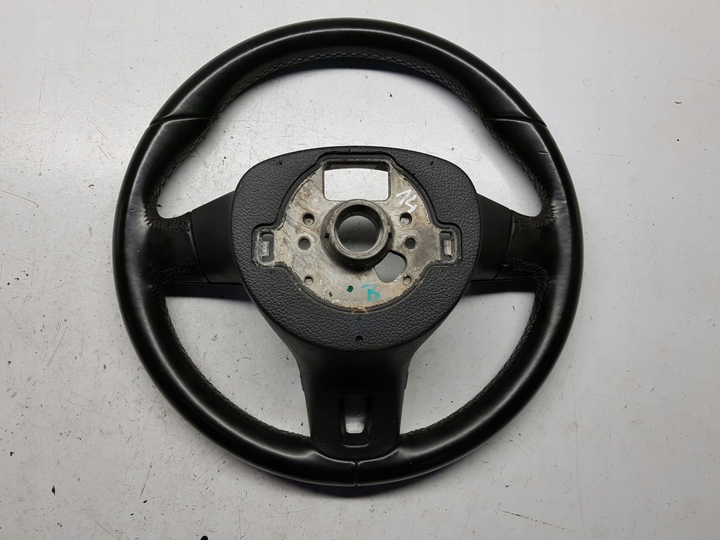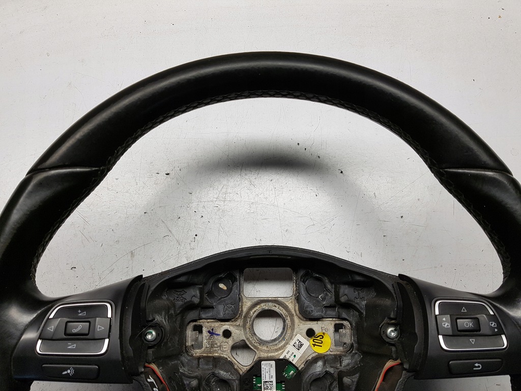 VW TIGUAN I 5N 06-15 LEATHER STEERING WHEEL. IT HAS SLIGHT SIGNS OF WEAR.